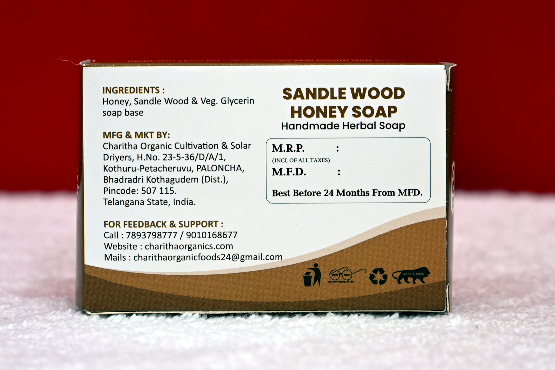 The kannauj attar soap is sandalwood rich, and 100% organic. Rich natural sandalwood content helps adding to your natural skin glow.